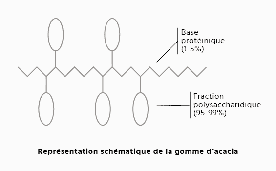 La gomme d’acacia contient de 90 à 97 % de fibres solubles. Ce sont des constituants végétaux qui résistent aux enzymes digestives salivaires et intestinales ainsi qu’à la flore buccale et intestinale. Lorsqu’ils arrivent intacts dans le côlon, ils se confrontent à plus de 400 espèces différentes de bactéries qui cohabitent avec l’homme. Parmi ces espèces, certaines sont capables de les utiliser comme carburant pour accroître leur développement : les probiotiques, connus comme étant bénéfiques pour un grand nombre de fonctions du corps humain.